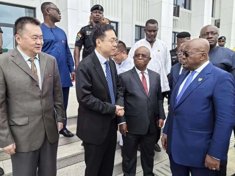 李旸代表中國政府對項目建成表示熱烈祝賀,并對阿庫福總統(tǒng)對項目建設(shè)和中加兩國友好發(fā)展的付出表示感謝。